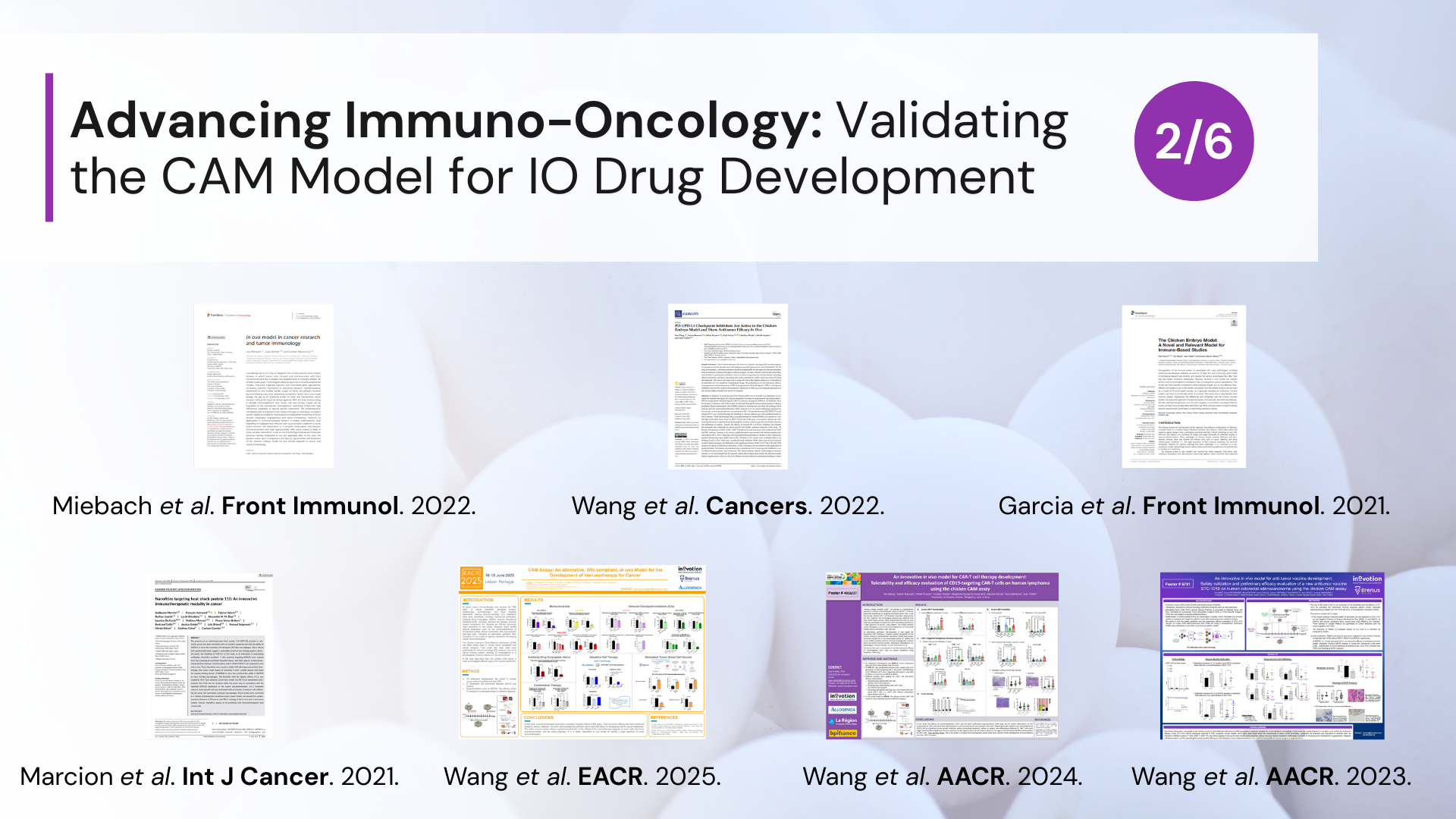 These studies collectively show that Inovotion’s NAMs CAM model offers real-time immune system interactions, high tumor engraftment success, and translational relevance, making it an invaluable platform to de-risk and accelerate immuno-oncology development.