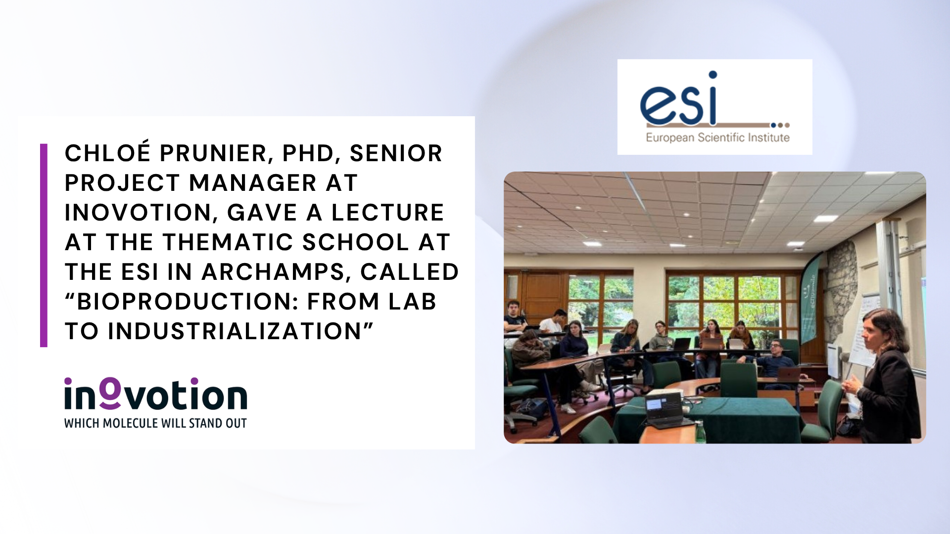 Chloé Prunier, PhD, Senior Project Manager at INOVOTION, recently gave a lecture at the thematic school at the ESI Archamps, called “Bioproduction: from lab to industrialization”, highlighting the integration of New Alternative Methods (NAMs) in the preclinical development of biological therapeutics.