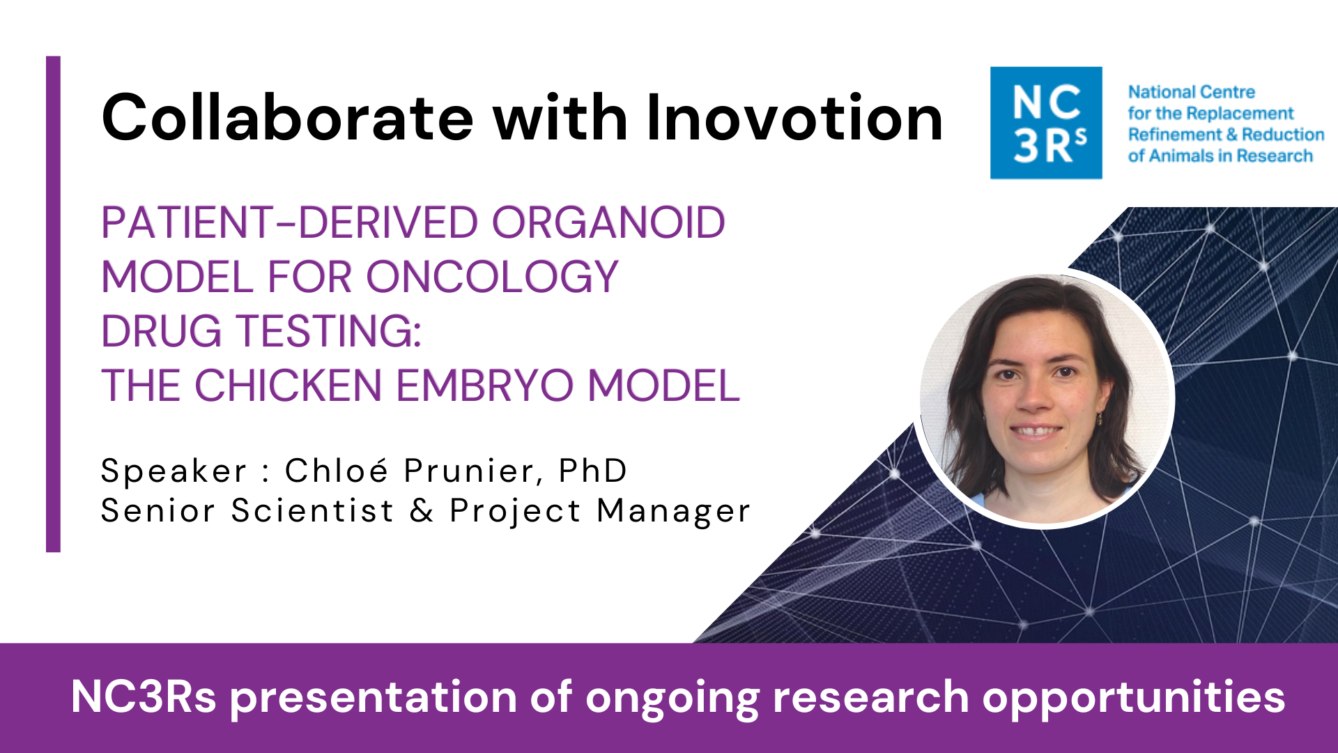 We were delighted to take part in the National Centre for the Replacement, Refinement and Reduction of Animals in Research (NC3Rs) Technology Partn3Ring webinar series, where Chloé Prunier, PhD, Senior Scientist & Project Manager at INOVOTION, presented our latest advances in oncology drug testing using the chicken Chorio-Allantoic membrane (CAM) model.