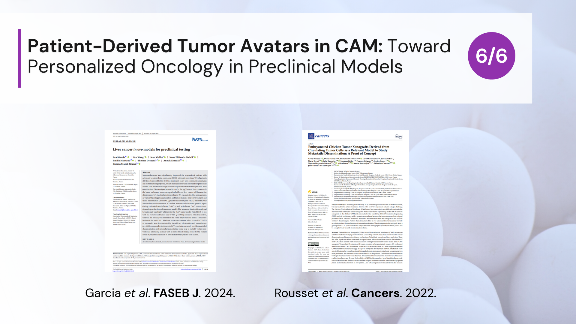 Personalized cancer treatment begins with personalized models. But traditional PDX approaches are often slow, costly, and ethically constrained. That’s why leading oncology innovators are turning to the CAM (Chorioallantoic Membrane) model – a fast, immune-reactive platform capable of hosting patient-derived tumor xenografts and circulating tumor cell (CTC)-based avatars.